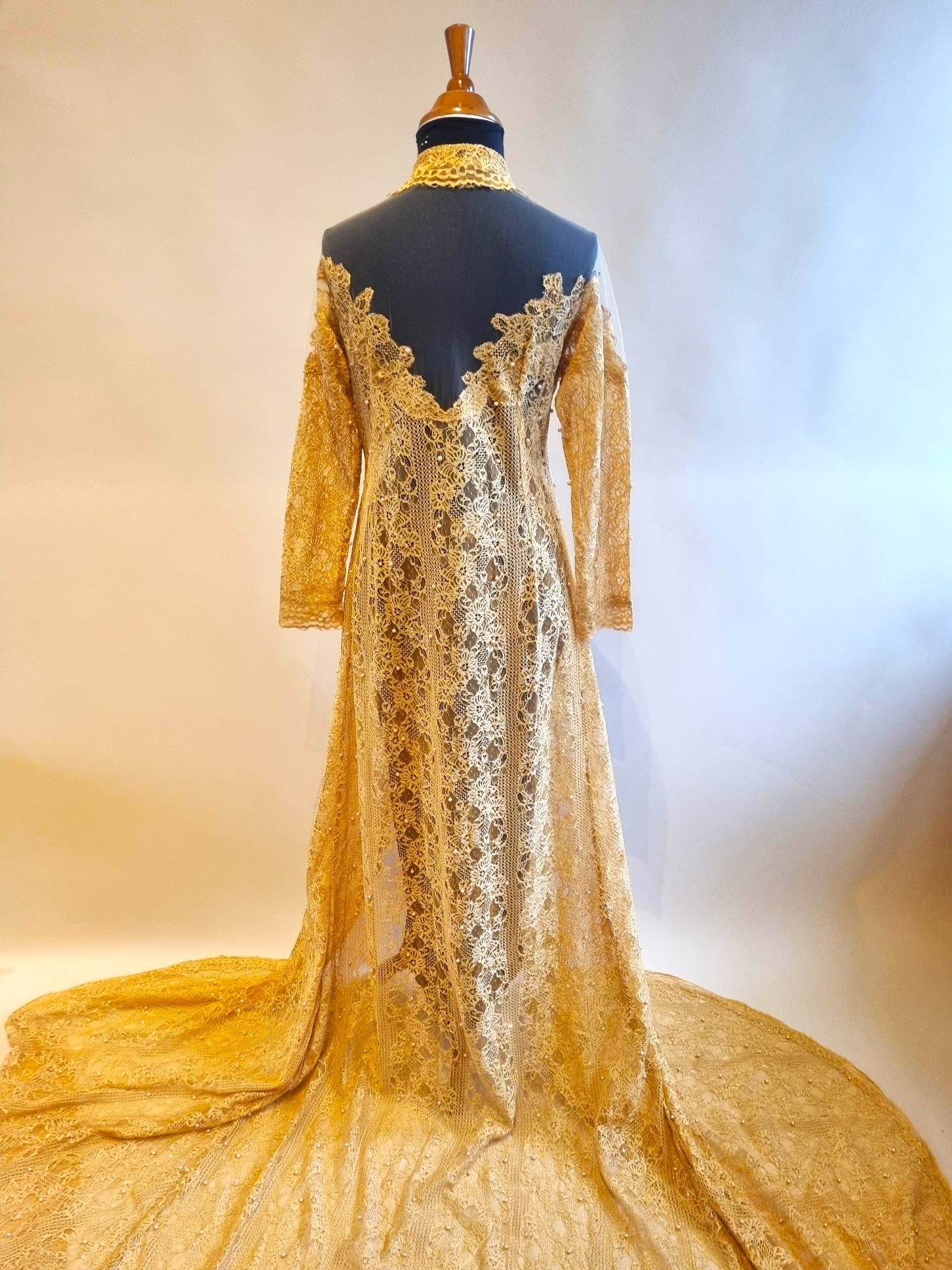 Bruidskebaya elegant goud met bijpassende rok plissé