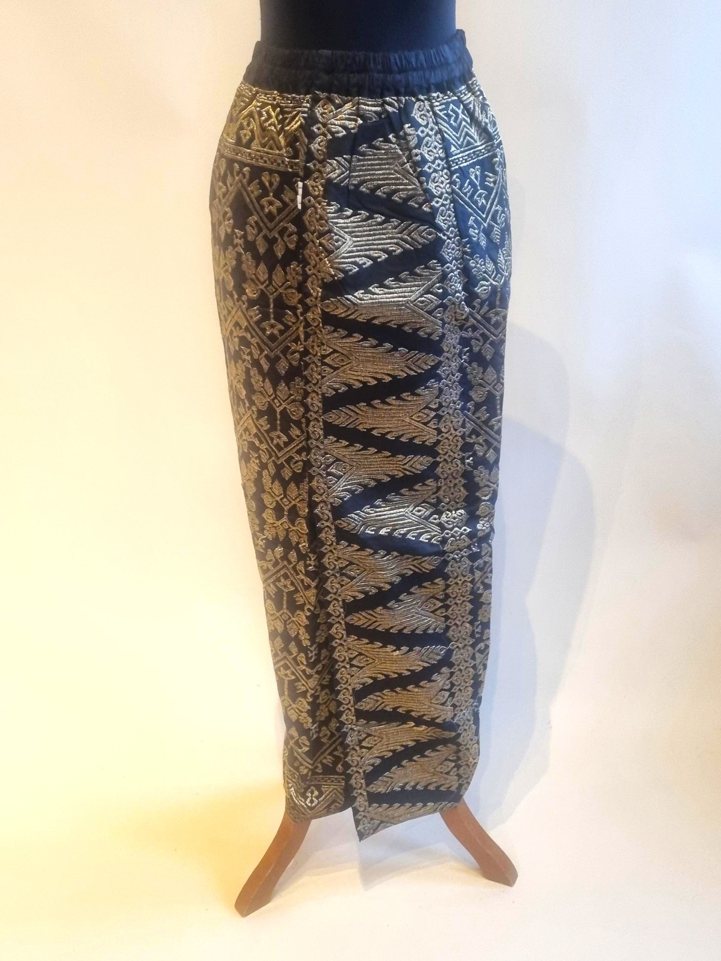 De kebaya is gemaakt van kanten stof met vaste voering.