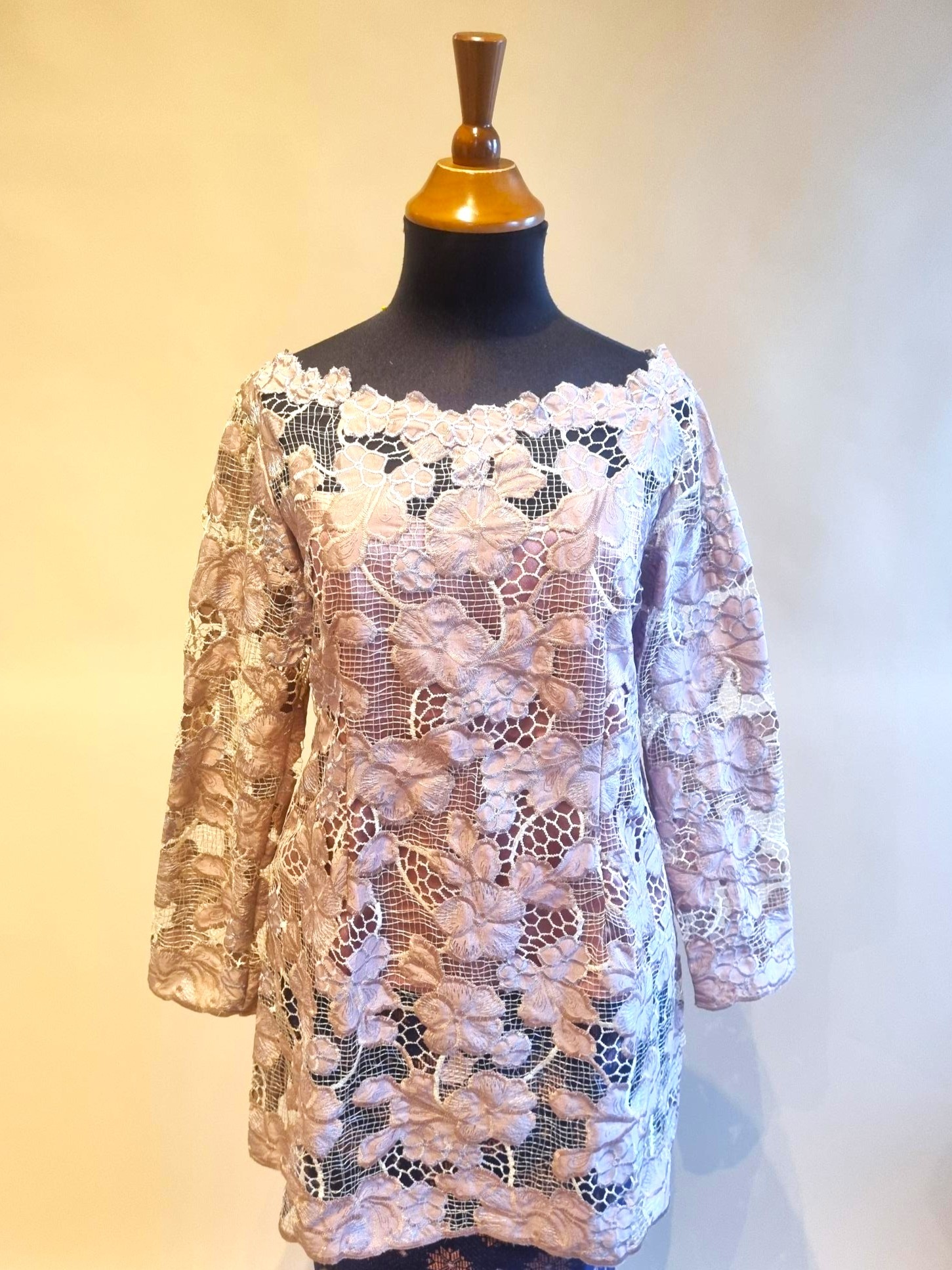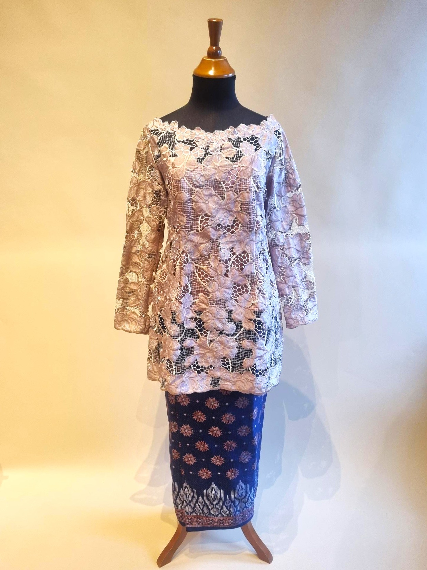 De kebaya is gemaakt van luxe polyester stof met vaste voering.