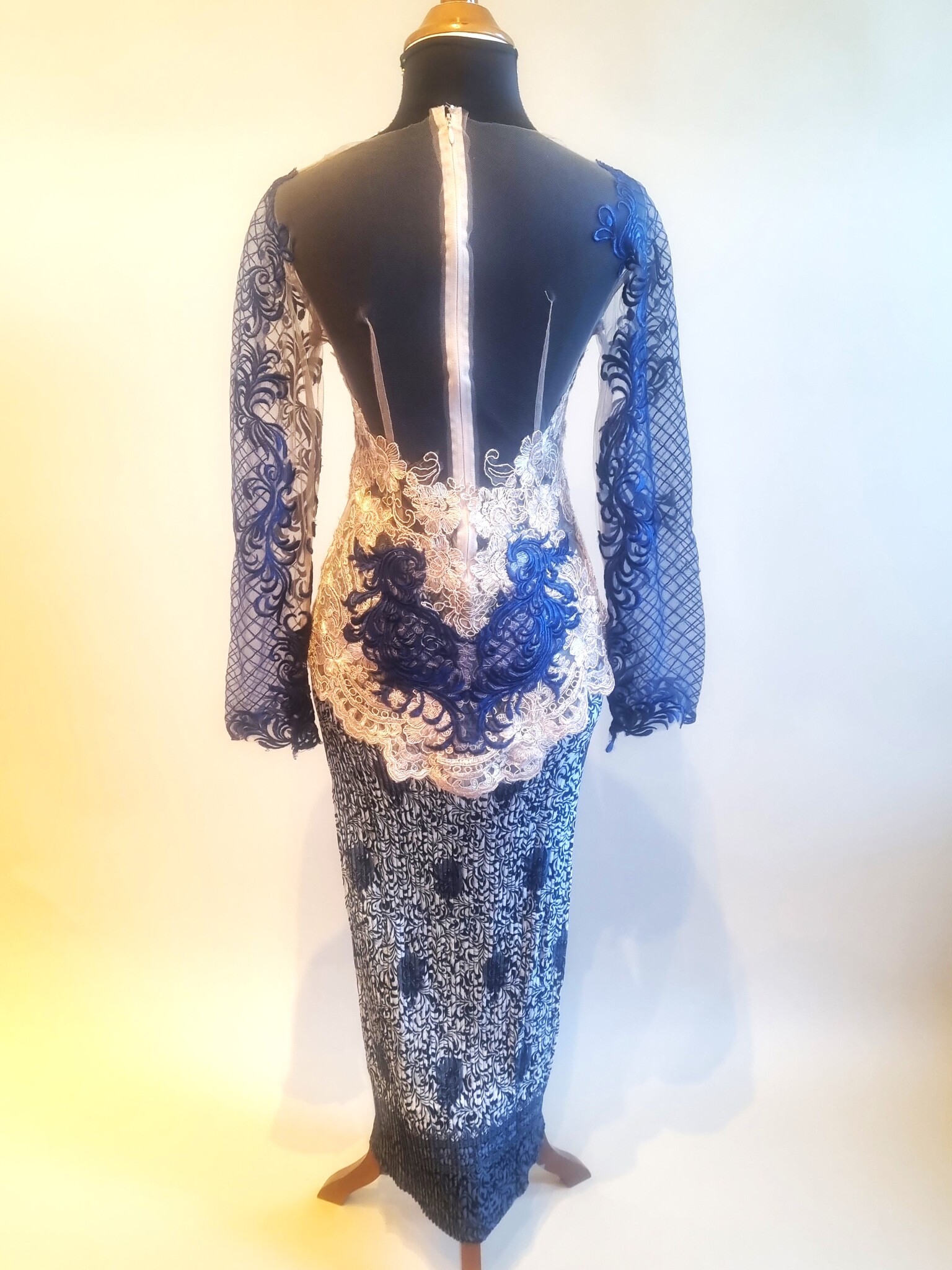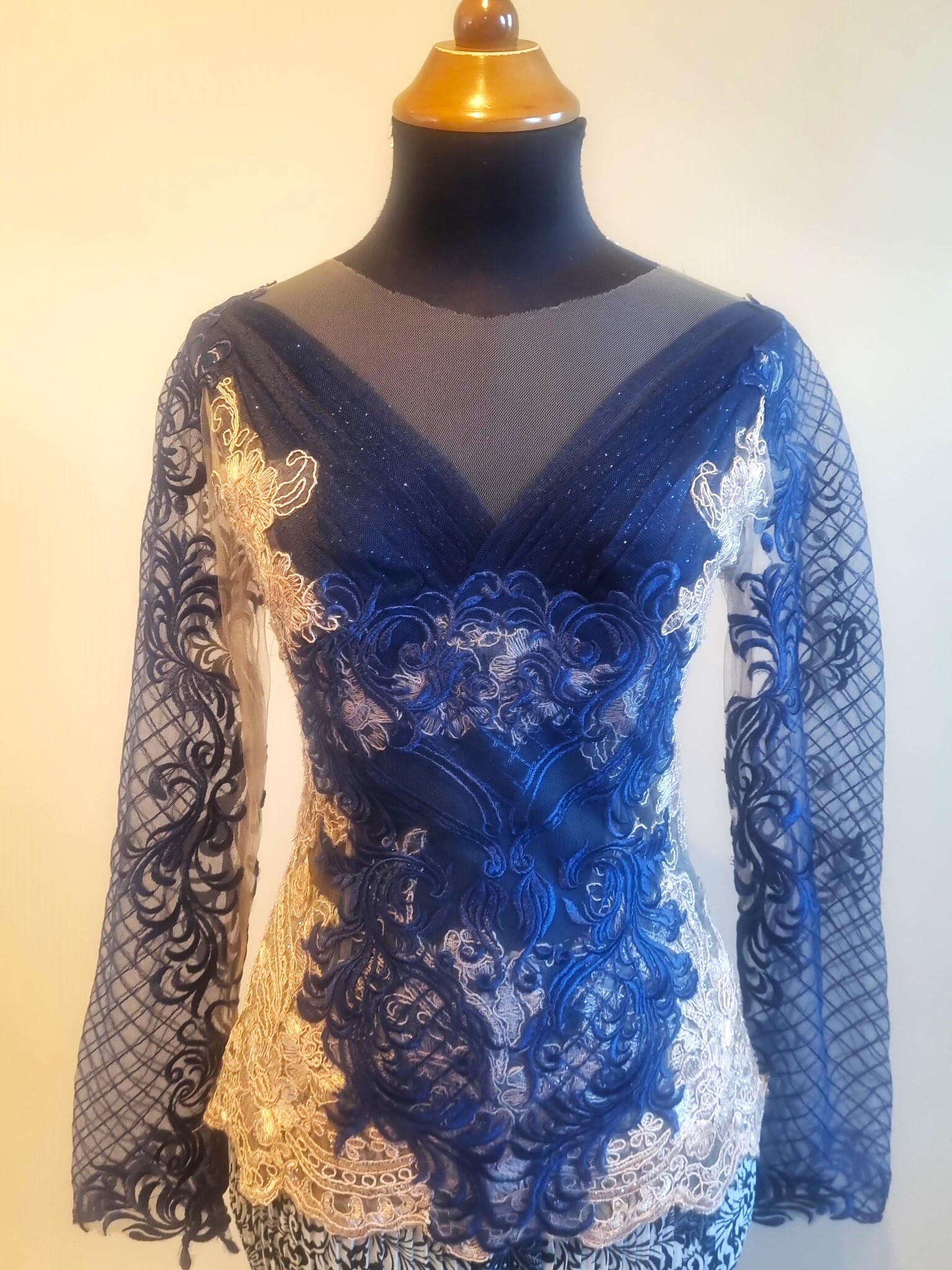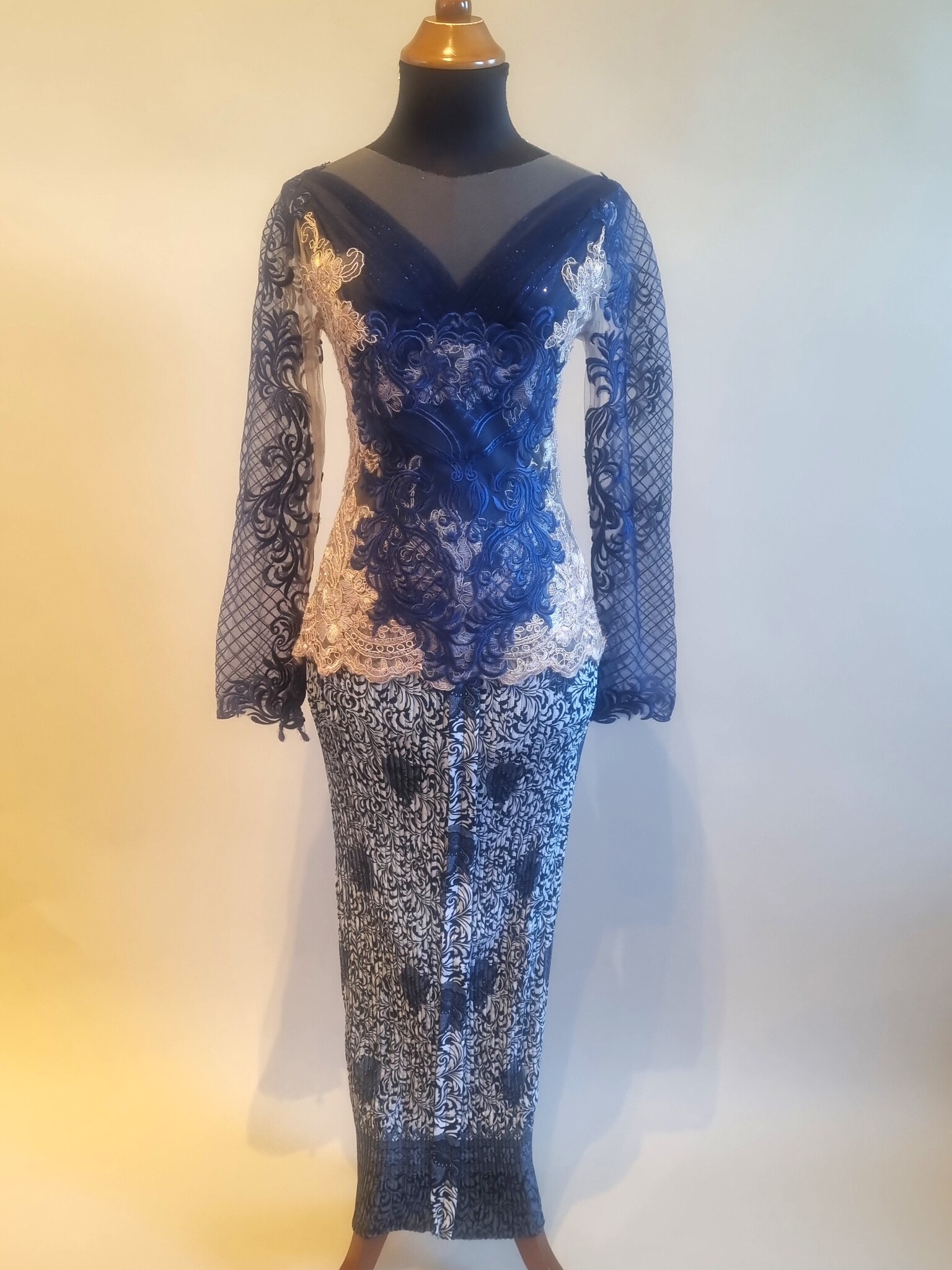 Kebaya elegant midnight blue met bijpassende rok plissé