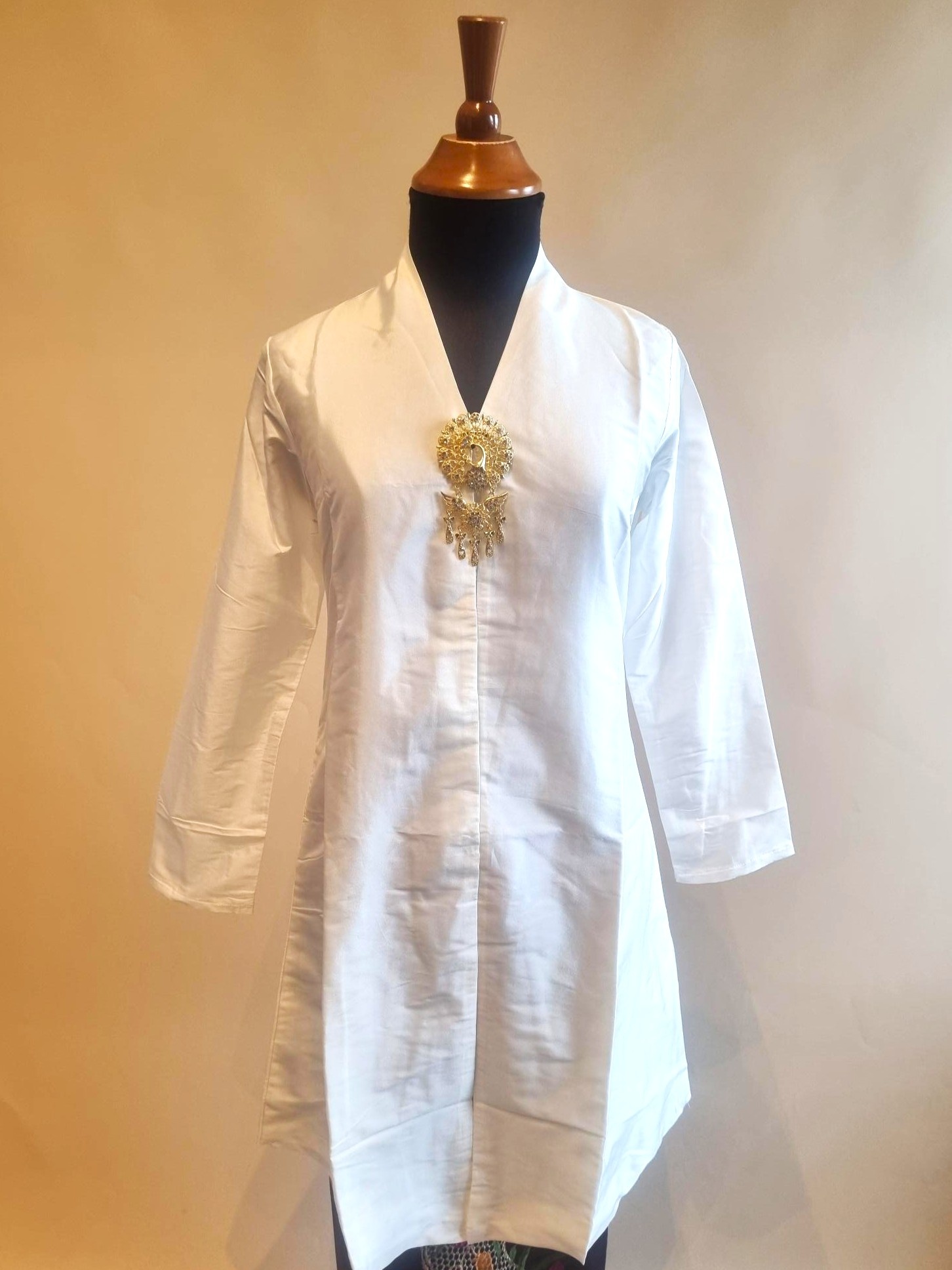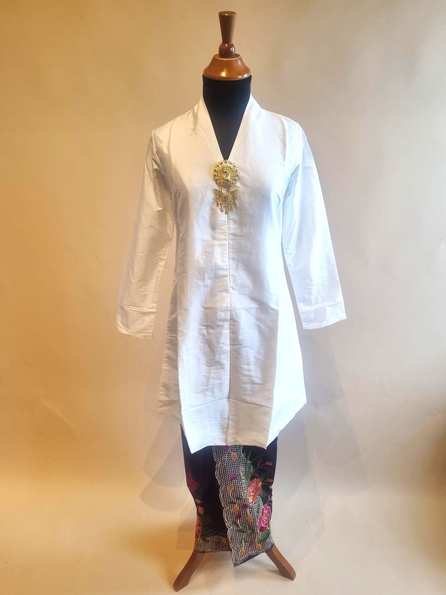 De kebaya is gemaakt van polyester stof, model met V hals.