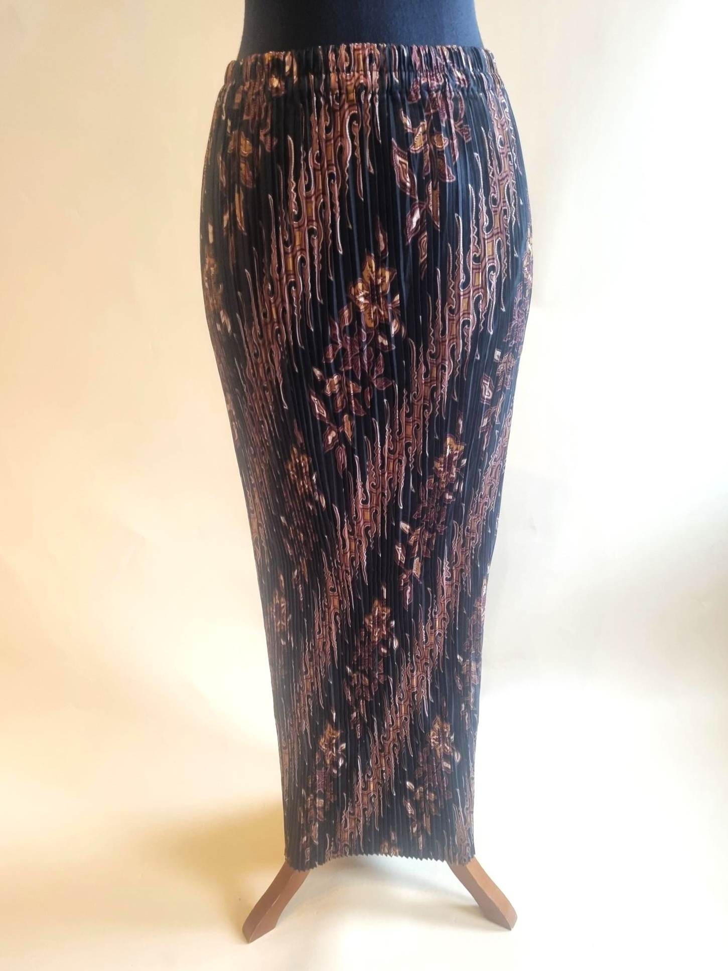 De rok plissé is gemaakt van elastisch rekbaar stof.