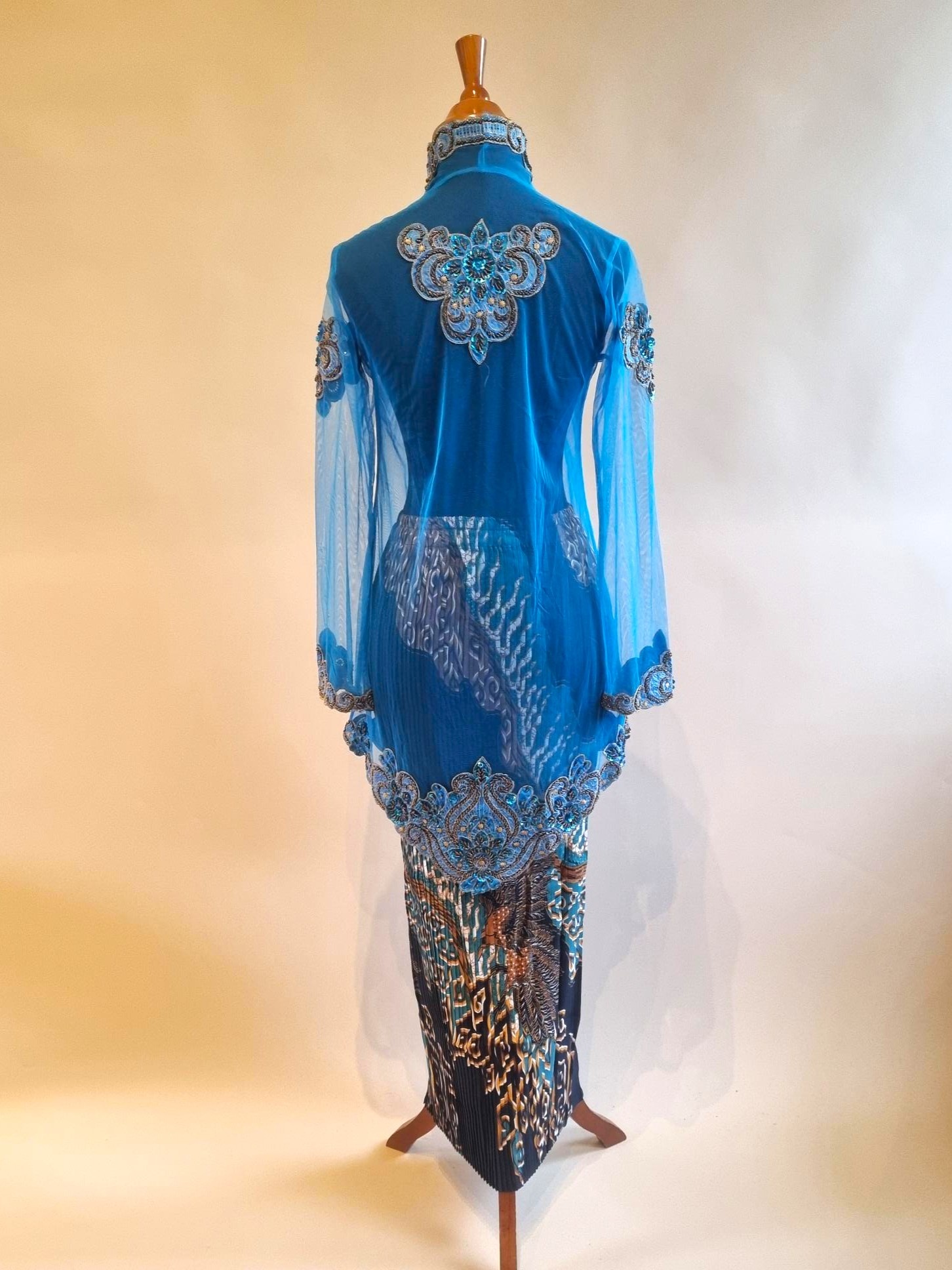 Kebaya glamour blauw met bijpassende rok plissé