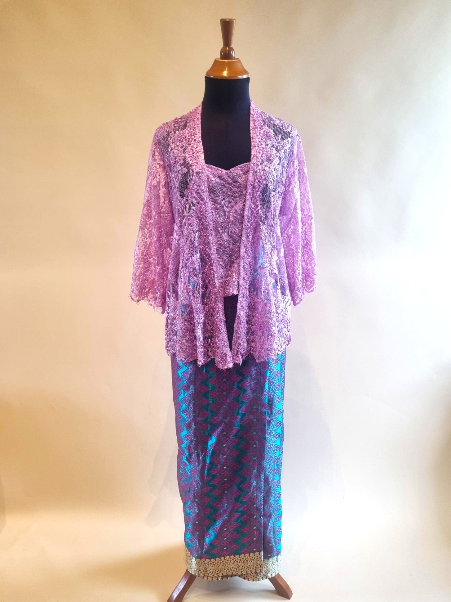 Kebaya glamour lila met bijpassende wikkel rok