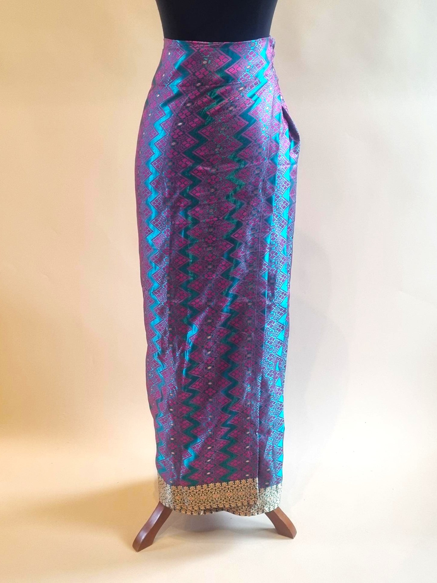 De wikkel rok is gemaakt van polyester stof.