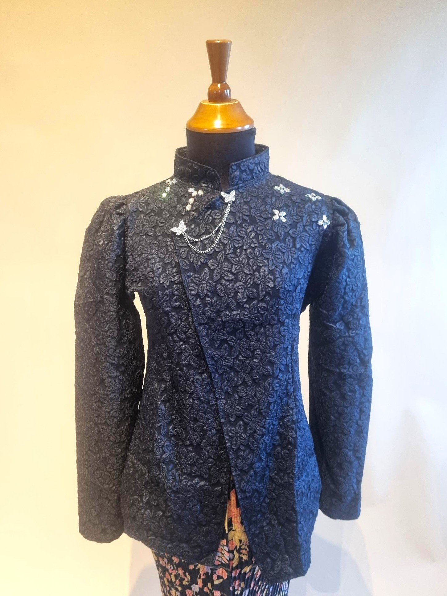Dit verwijst naar de torenhoge kraag; de hoge kraagvorm en lange gesloten mouwen geven deze kleding zijn eigen kenmerken (in vergelijking met andere kebaya-varianten), wat ook assertiviteit en wendbaarheid van de drager impliceert.