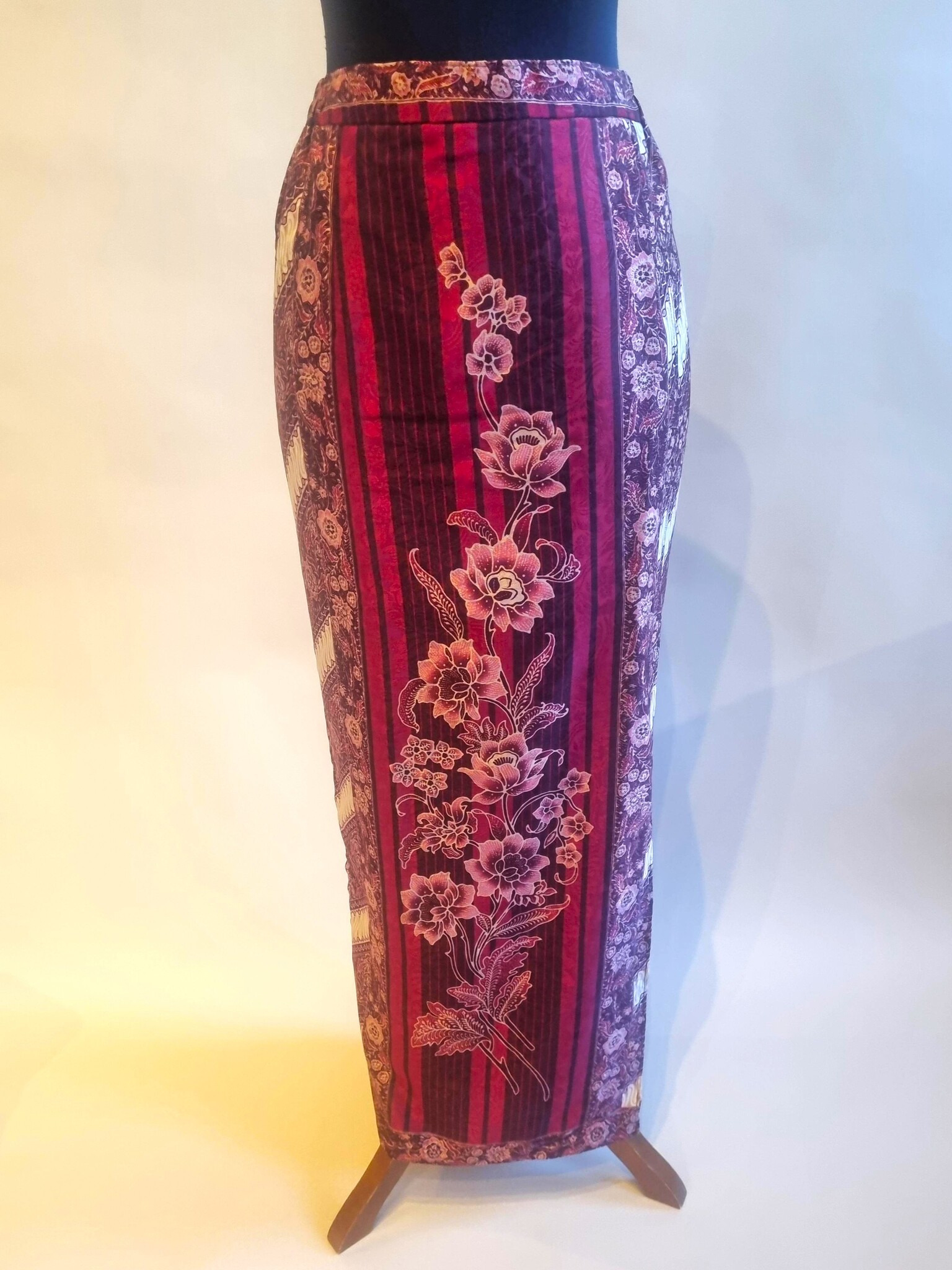 De sarong is gemaakt van polyester stof met vaste voering.