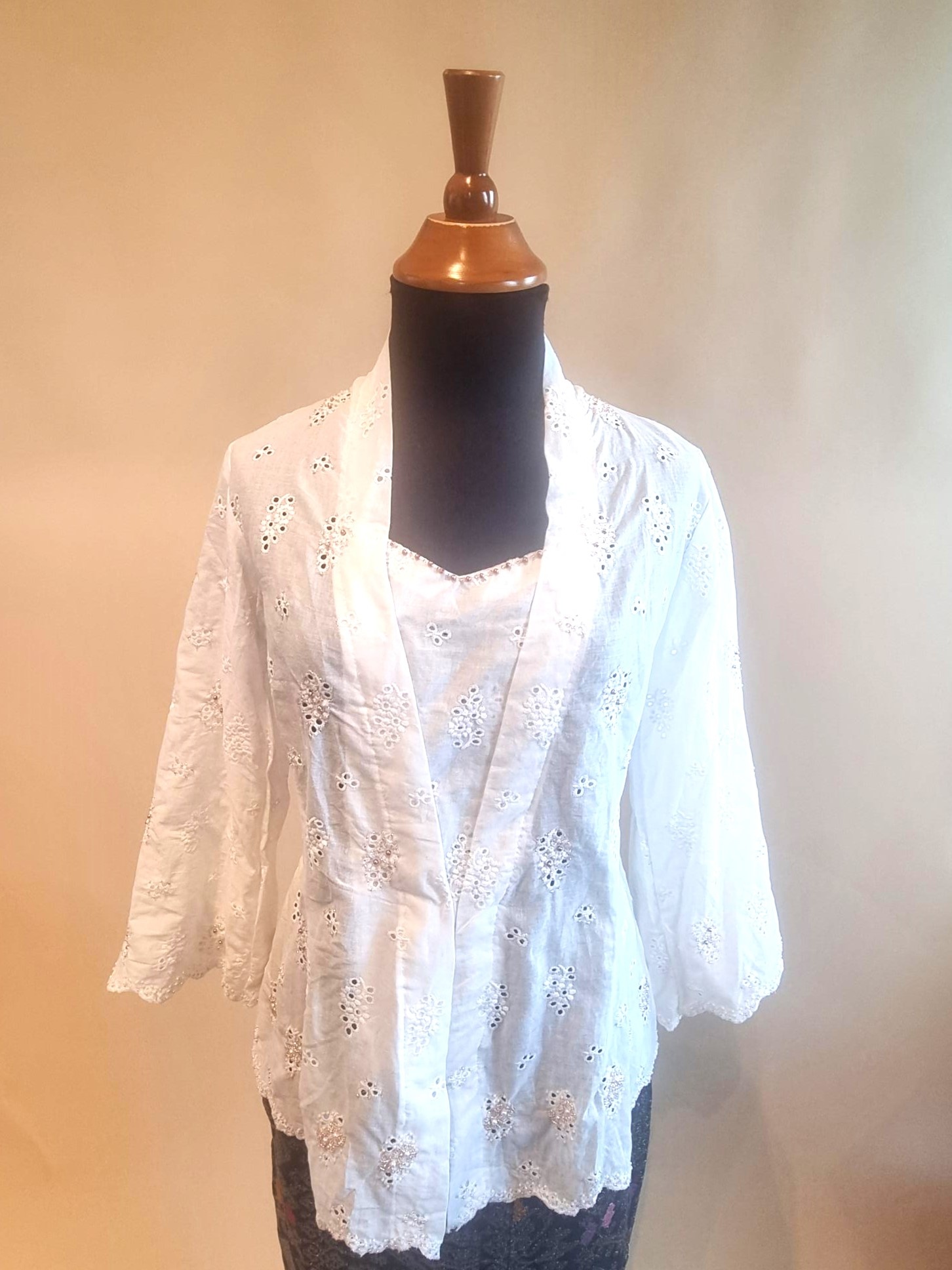 De kebaya is gemaakt van katoenstof.