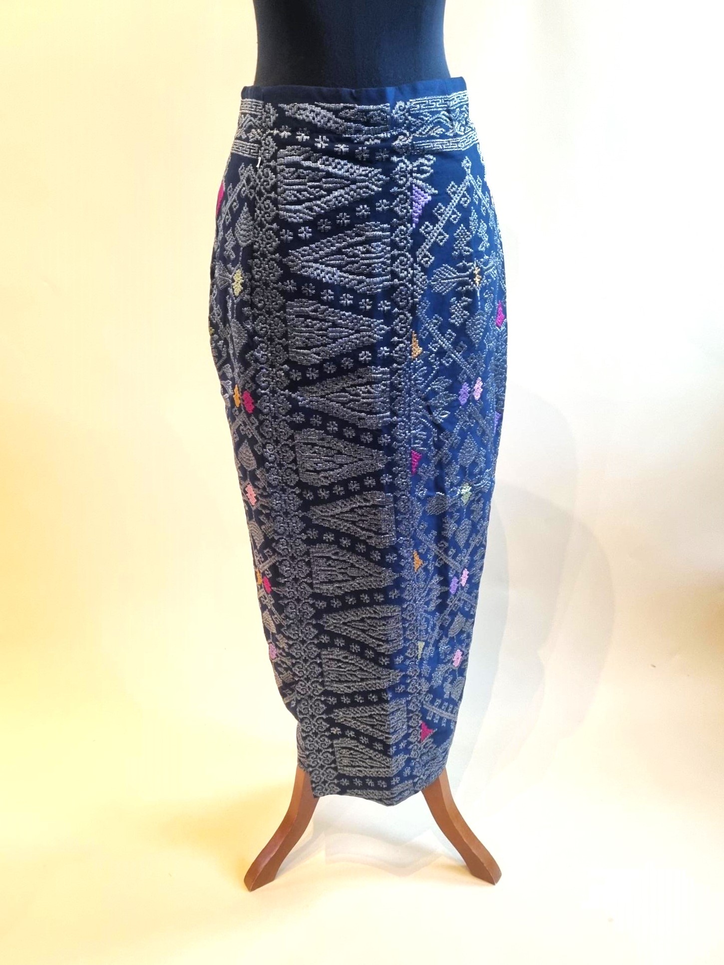 De sarong is gemaakt van viscose (songket) stof.