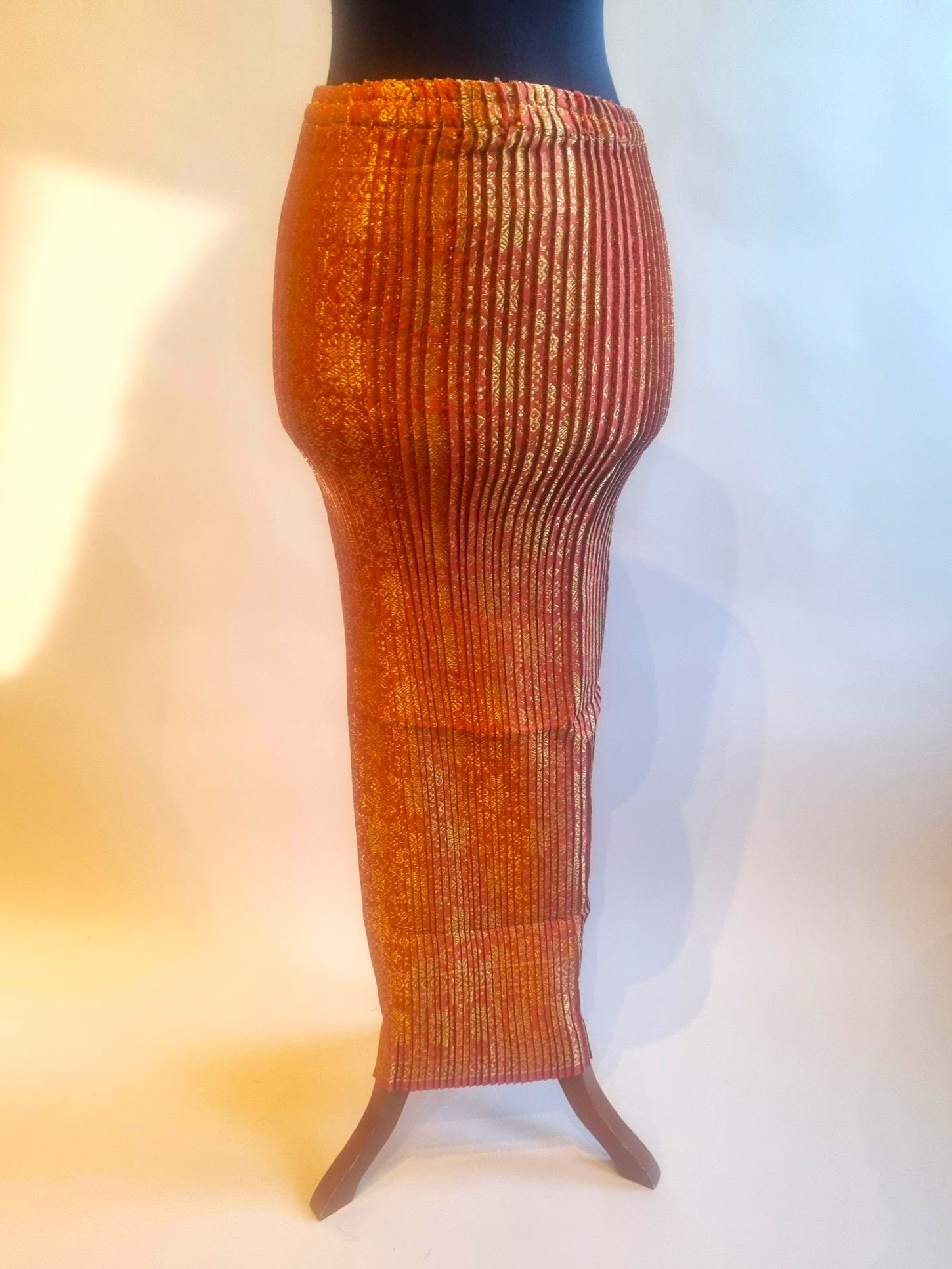 De rok plissé is gemaakt van rekbaar (elastische) stof.
