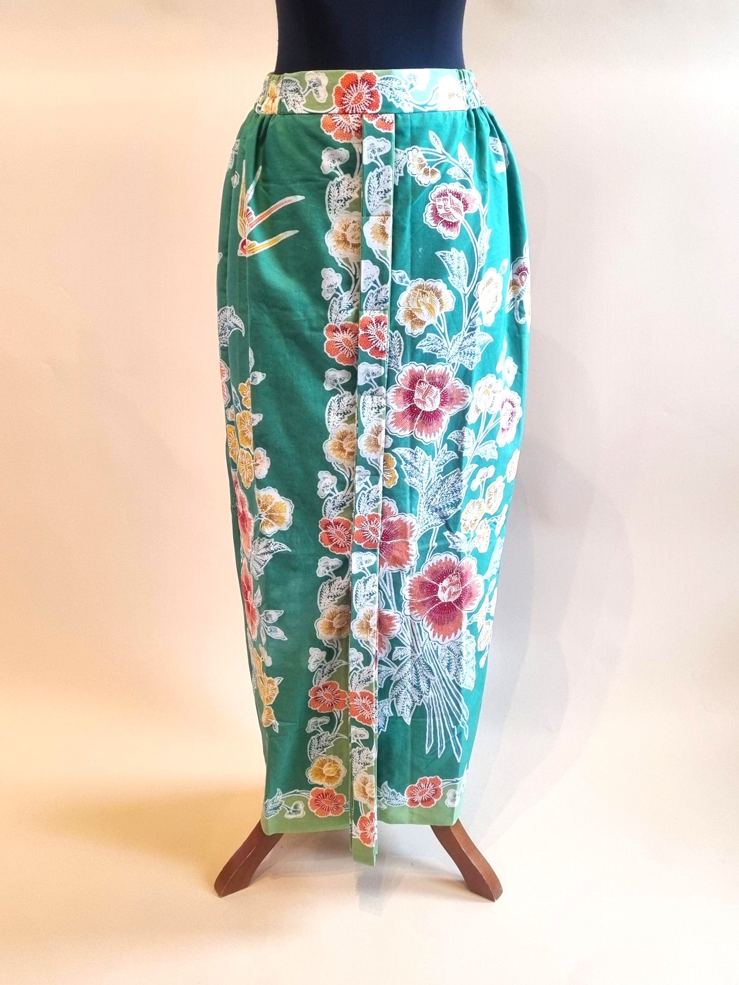 De sarong is gemaakt van Batik tulis (hand gemaakt batik).