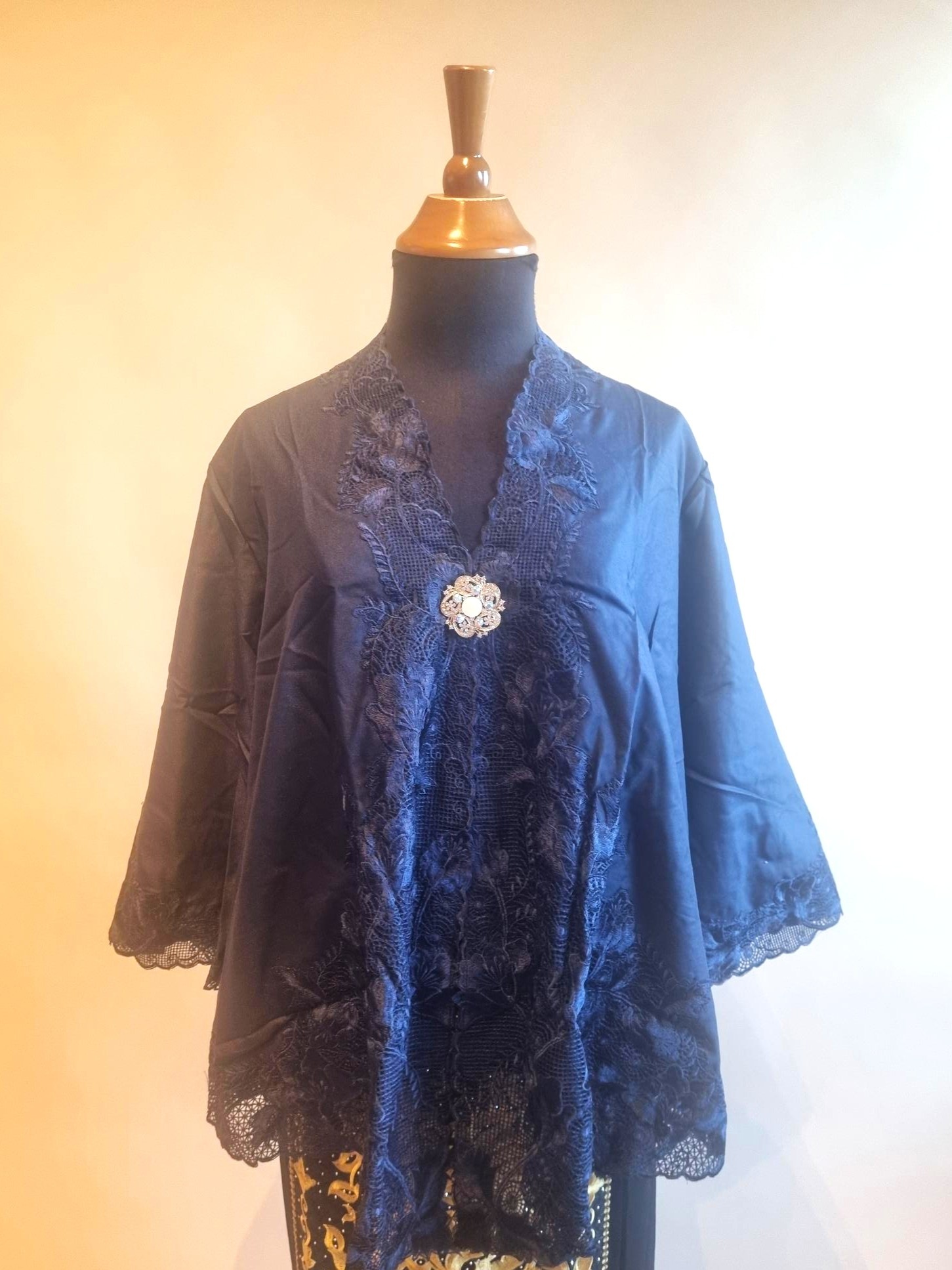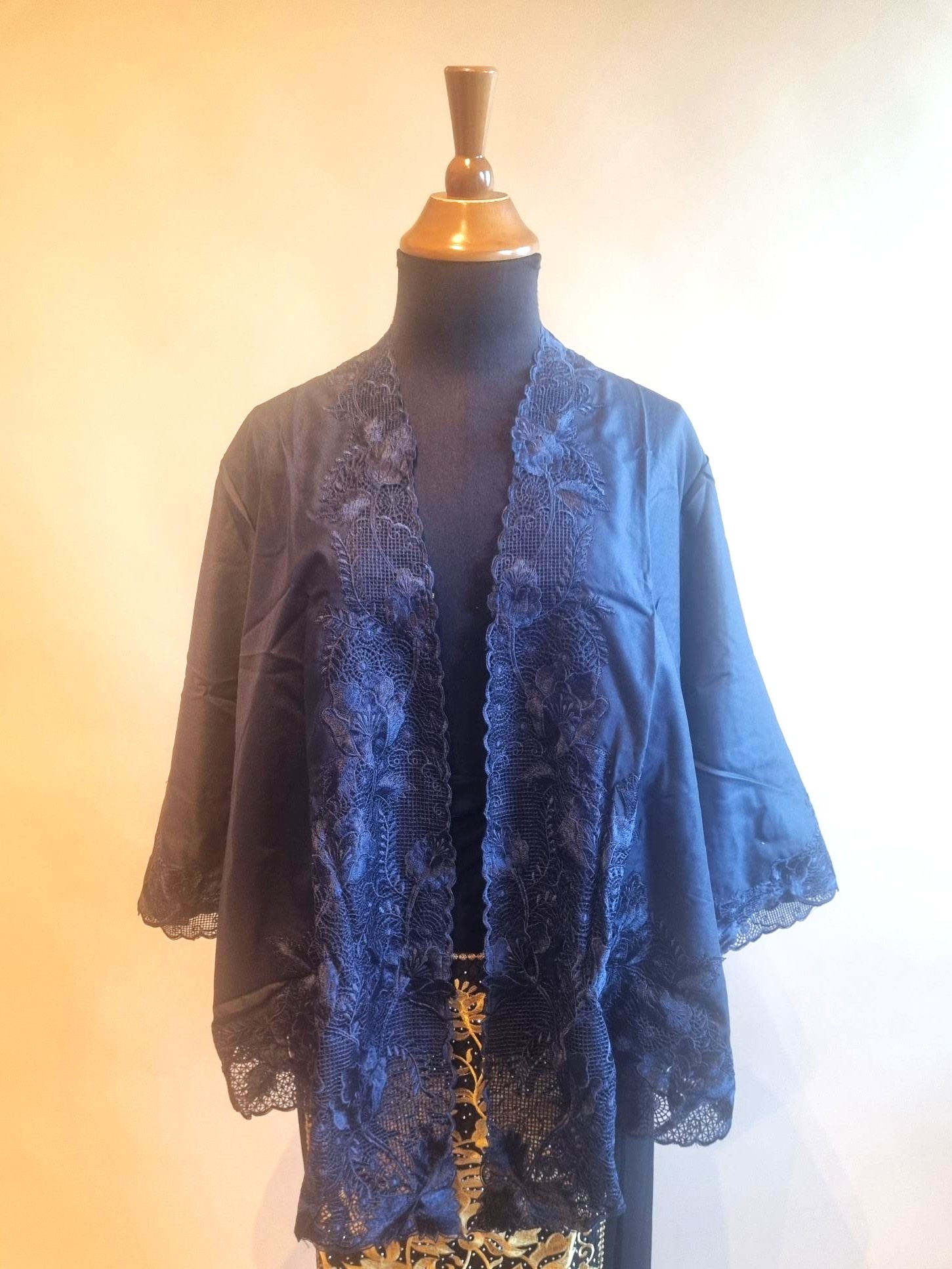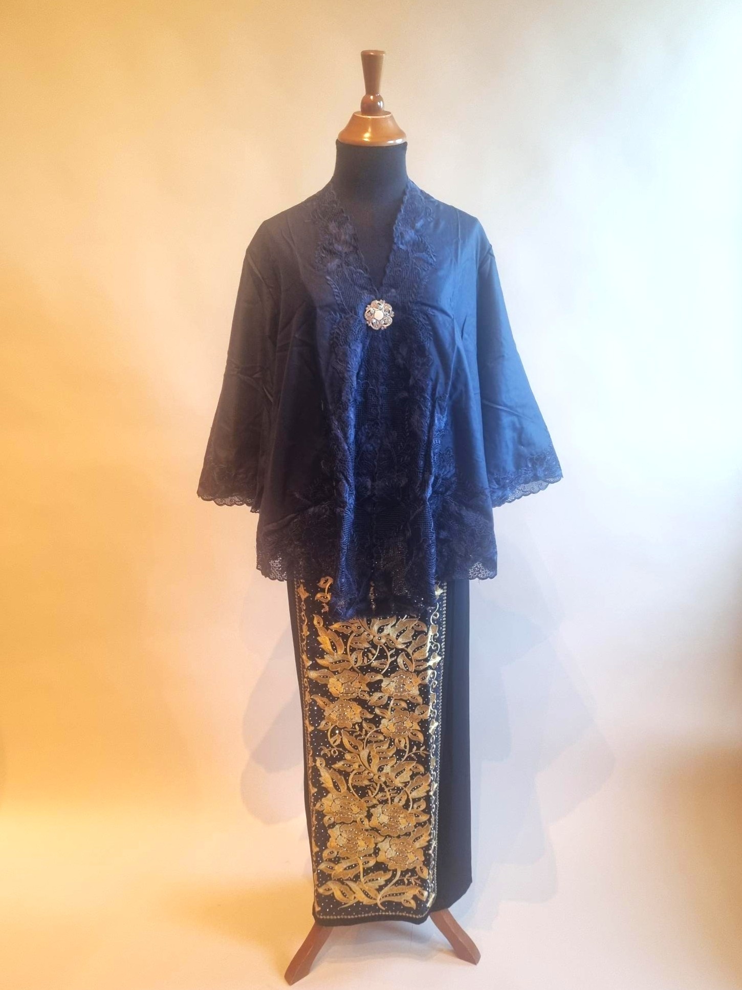 Kebaya outer navy blue met bijpassende wikkel rok