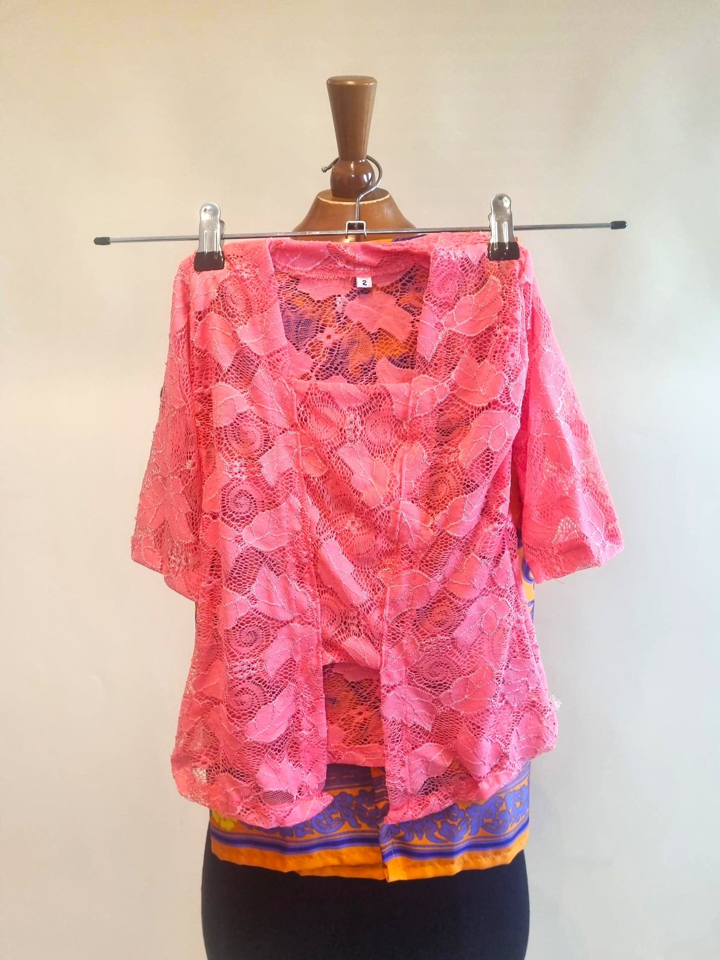 De kinder kebaya is gemaakt van kantenstof.