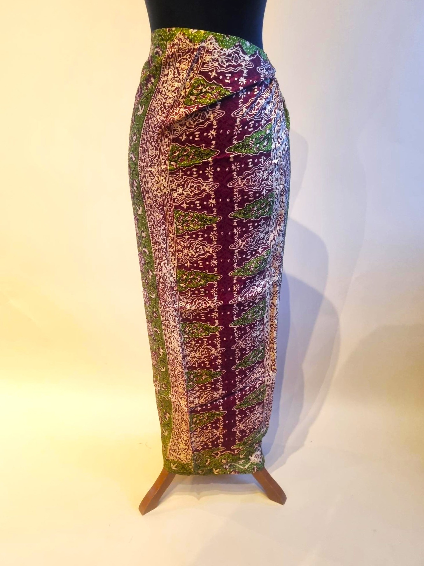 De tuniek en bijpassende wikkel sarong zijn gemaakt van Polyester viscose stof.